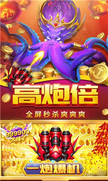 游戏中经常会出现闪电鱼、炸弹鱼、霸王蟹等特殊鱼种,每种特殊鱼被捕获均可获得大量金币。比如:炸弹蟹捕获可对屏幕中其他鱼造成爆炸效果,金币也就哗哗流入你的口袋,一次收入会获得海量的金币。