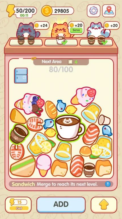2.在猫咪的陪伴下,每合并烹饪都充满惊喜,管理餐厅的过程策略与成就感满满;