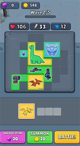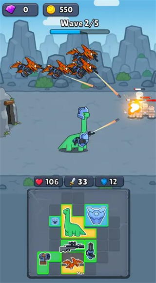 2、可自由布置恐龙站位,利用地形阻挡敌人,并实时调整肉盾型三角龙前排阵型。