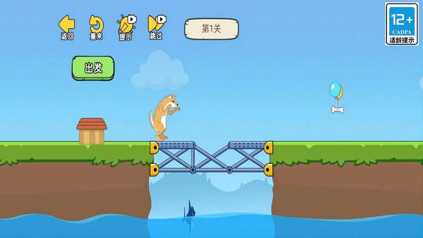 3、找到合适的办法,搭建桥梁,让小狗走过去。