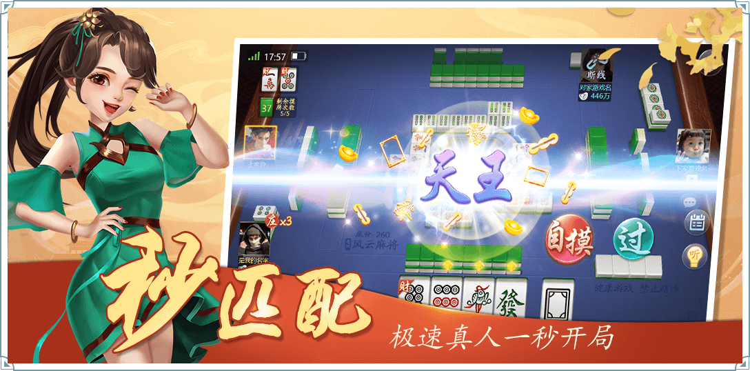 场景化的牌桌,丰富有趣的游戏动画,防作弊的真人牌桌。